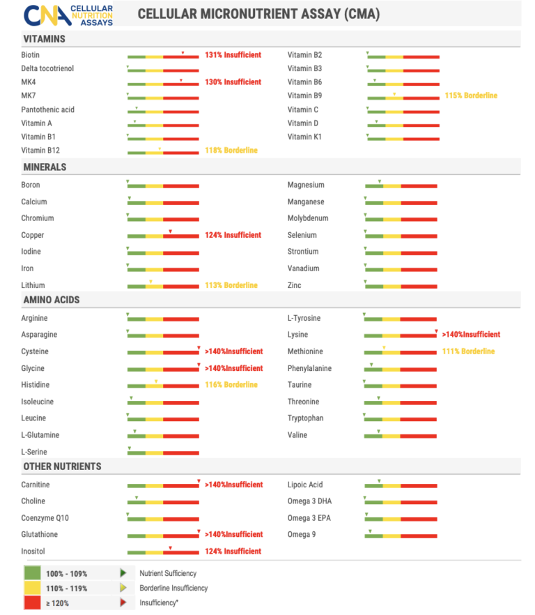 The Cellular Nutrient Assay (CNA) from is designed to assess how well an individual’s cells absorb and utilize essential vitamins, minerals, antioxidants, and amino acids. Unlike traditional serum blood tests that only measure what’s circulating in the bloodstream at a given moment, the CNA evaluates long-term nutrient status at the cellular level.